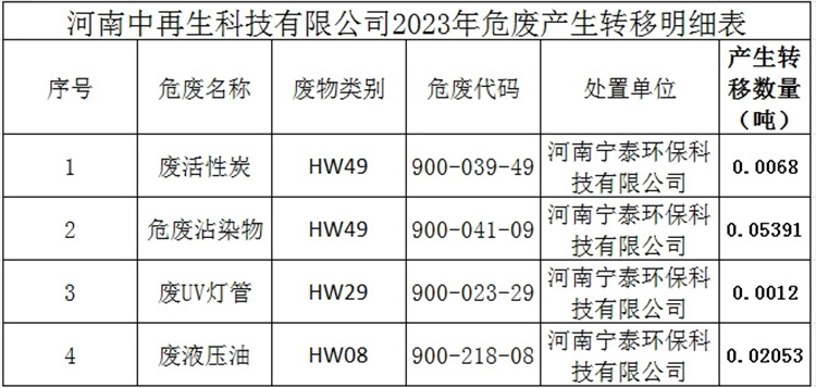 河南中再生科技有限公司2023年危廢情況公示