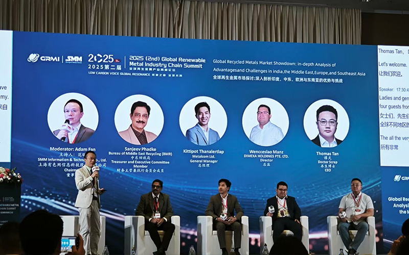 2025年6月12日至13日,2025SMM(第二屆)全球再生金屬產(chǎn)業(yè)高峰論壇在泰國曼谷素萬那普機場凱悅酒店盛大召開。作為全球再生金屬行業(yè)的年度盛會,本次論壇匯聚了來自中國、印度、中東、東南亞等地的行業(yè)協(xié)會、頂尖企業(yè)及科研機構(gòu),共同探討行業(yè)綠色轉(zhuǎn)型、技術(shù)創(chuàng)新與國際合作新路徑。河南中再生科技有限公司作為資源再生裝備領(lǐng)域的領(lǐng)軍企業(yè),受邀出席并深度參與技術(shù)研討,為全球再生金屬產(chǎn)業(yè)高質(zhì)量發(fā)展貢獻中國智慧。
